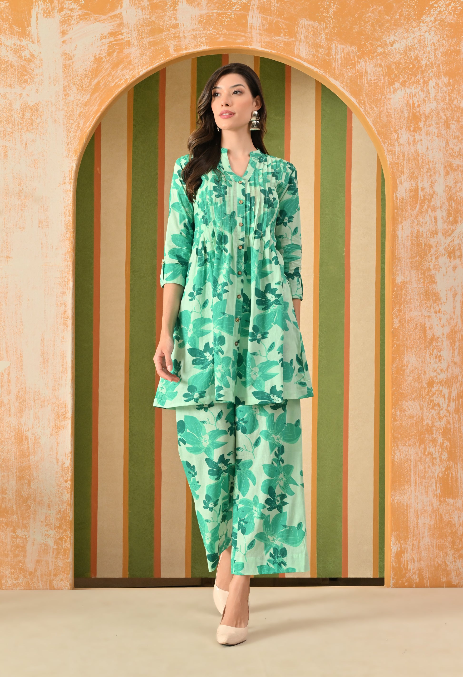 Discover vibrant sophistication with our Emerald Dream Co-ord Set. This stunning ensemble in a rich green hue combines contemporary style with timeless comfort. The premium cotton fabric drapes beautifully against the skin, offering breathability and movement that transitions effortlessly from day to evening occasions.